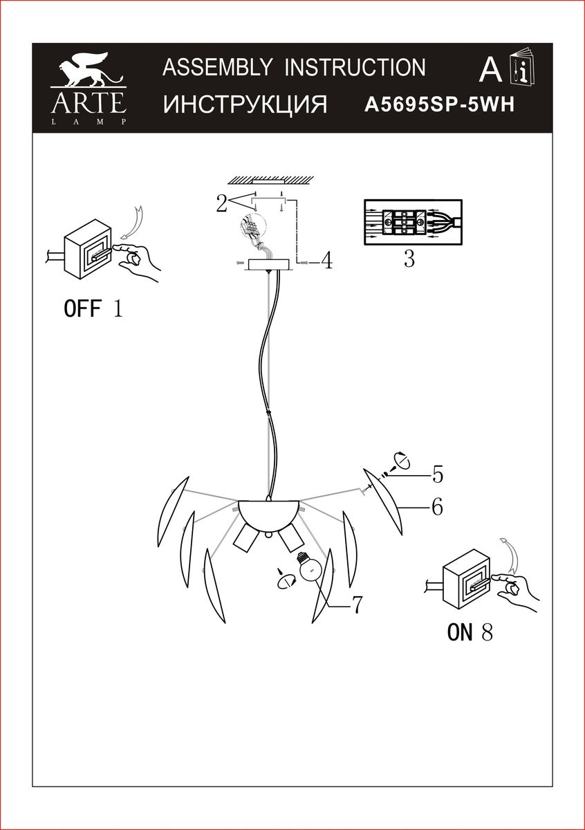 Подвесная люстра Arte Lamp Palmer A5695SP-5WH – купить за 101 940 ₸ | Lampella.kz - интернет магазин светильников с доставкой по всему Казахстану