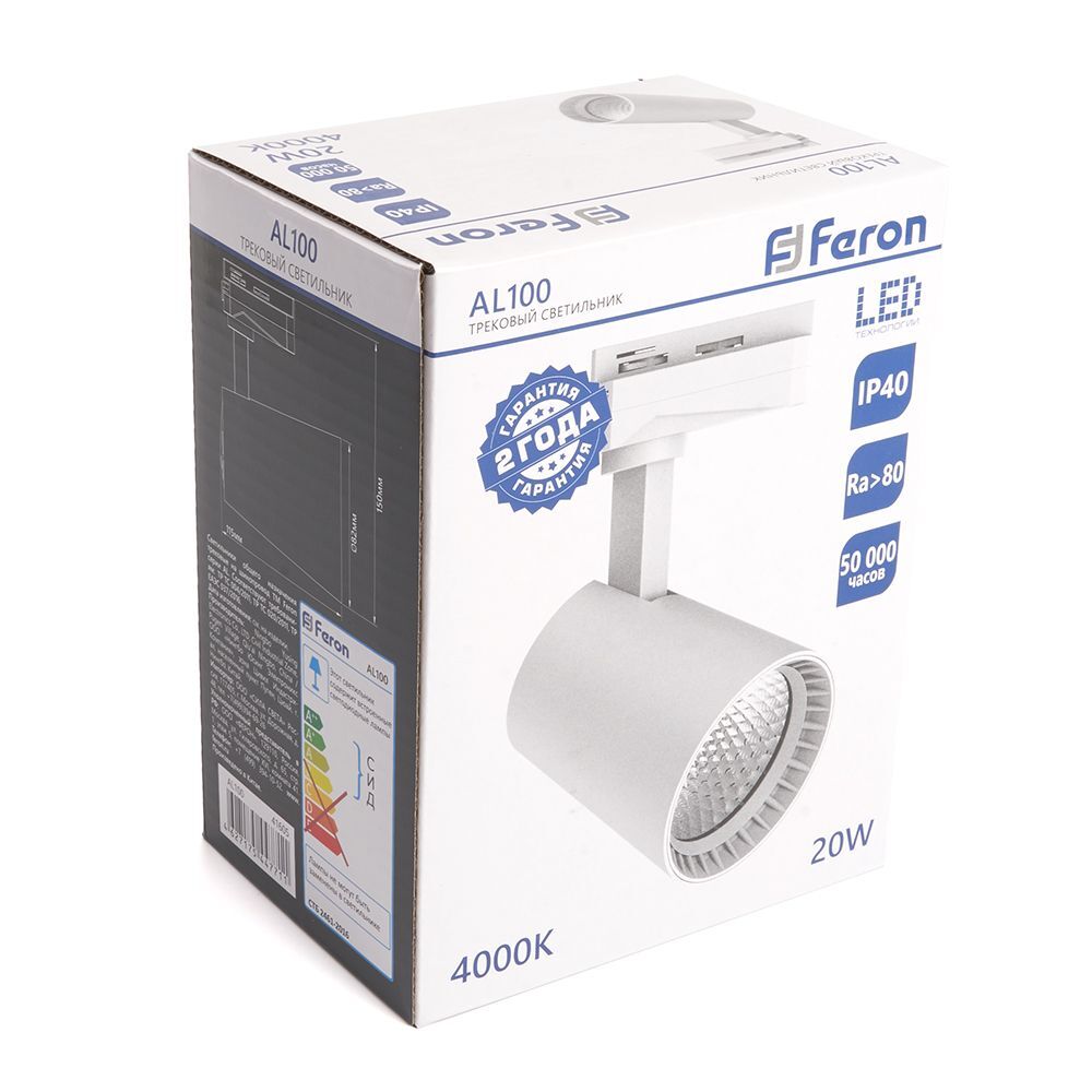 Трековый светодиодный светильник Feron AL100 41605 – купить за 3 520 ₸ | Lampella.kz - интернет магазин светильников с доставкой по всему Казахстану